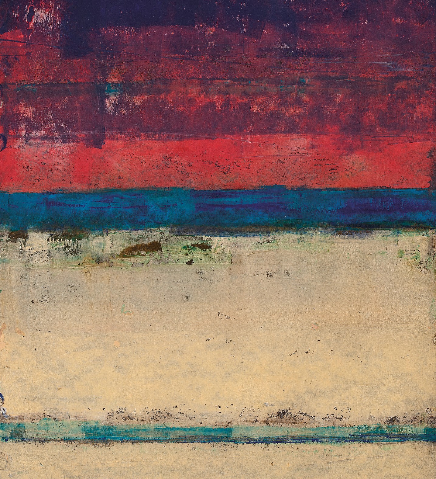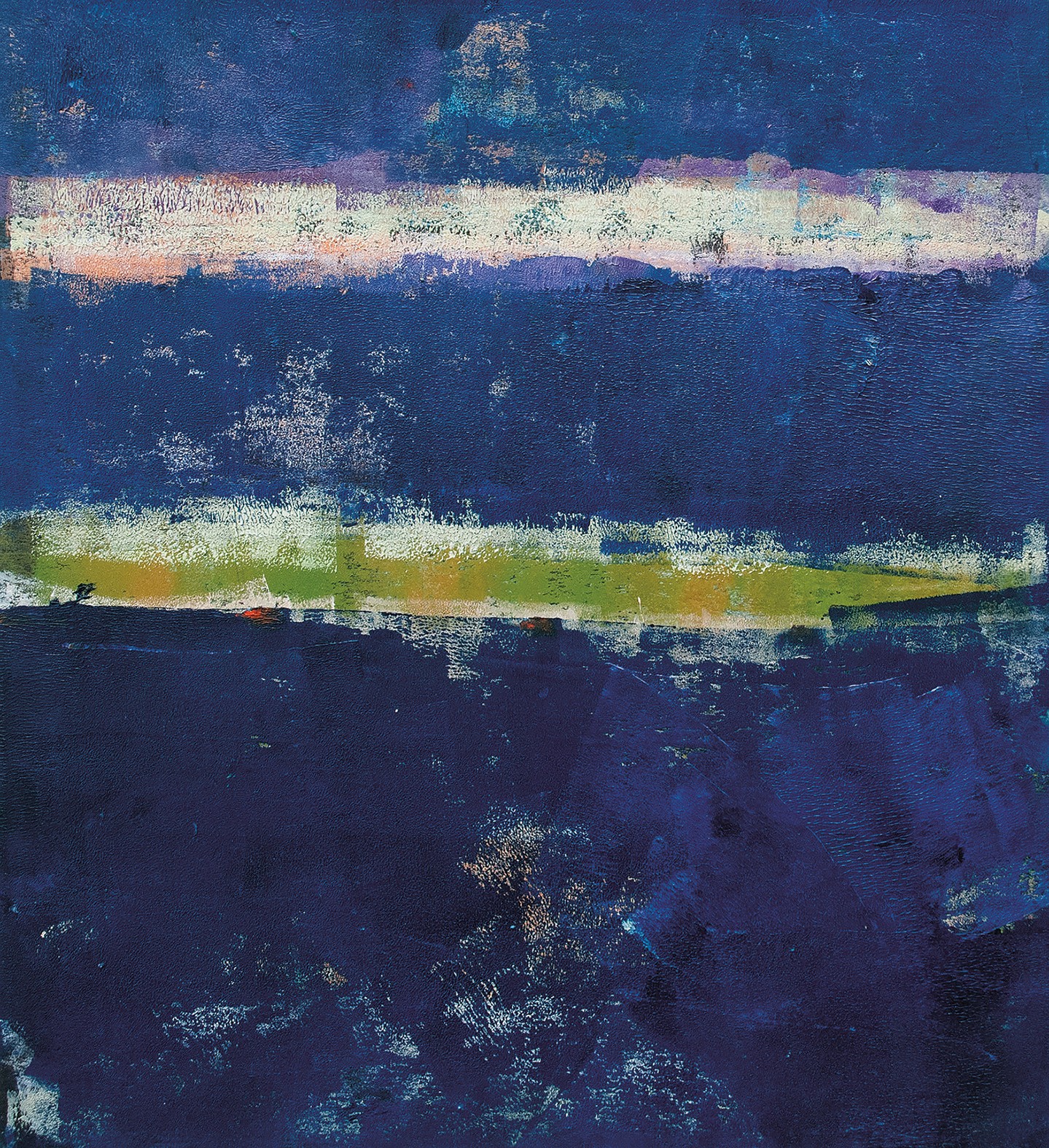 Lines act as forces: they divide, connect, interrupt and guide. Colour fields respond like a second voice in the composition.